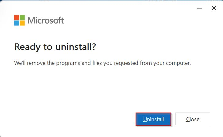 Step 7: - A message will pop up to indicate when the uninstall is completed