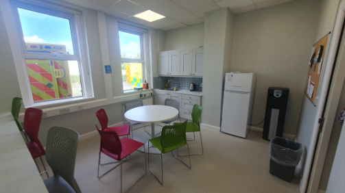 The Ballinasloe Medical Academy is unique in that it is facilitates students from two medical schools, University of Galway (years 3.2 to 5.2) and the University of Limerick graduate entry programme (years 3 and 4). The Academy is based in a 2 storey building to the front of the hospital and is shared with the ambulance and paramedic teams. UL are based on the top floor and the University of Galway the ground floor. Both floors have large rooms for videoconferencing which double as study spaces and smaller tutorial rooms (2 UL, 2 University of Galway) with space for academic secretaries (2 rooms) and 1 tutor room.