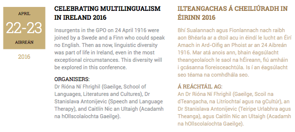 Cliceáil anseo chun teacht ar thuilleadh eolais faoi Ilteangachas á Cheiliúradh in Éirinn 2016