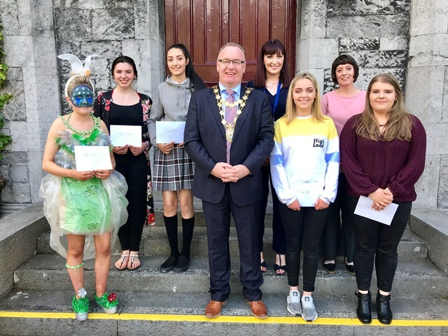 Inspiring creativity, design thinking and environmental awareness the competition invited second-level students across Galway city and county to design an art piece capturing the theme ‘Why making Galway plastic free matters to you’. The Mayor of the City of Galway, Cllr. Pearce Flannery presented winners with their prizes, which were kindly sponsored by Iceland Ireland Ltd, Galway County Council, Galway City Council and SEAI.