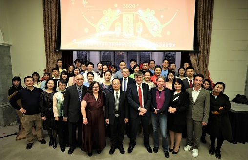 Confucius Institute of Chinese and Regenerative Medicine at the University of Galway personnel with He Huang, Counsellor of the Chinese Embassy in Ireland, and other guests at the Spring Festival Gala.