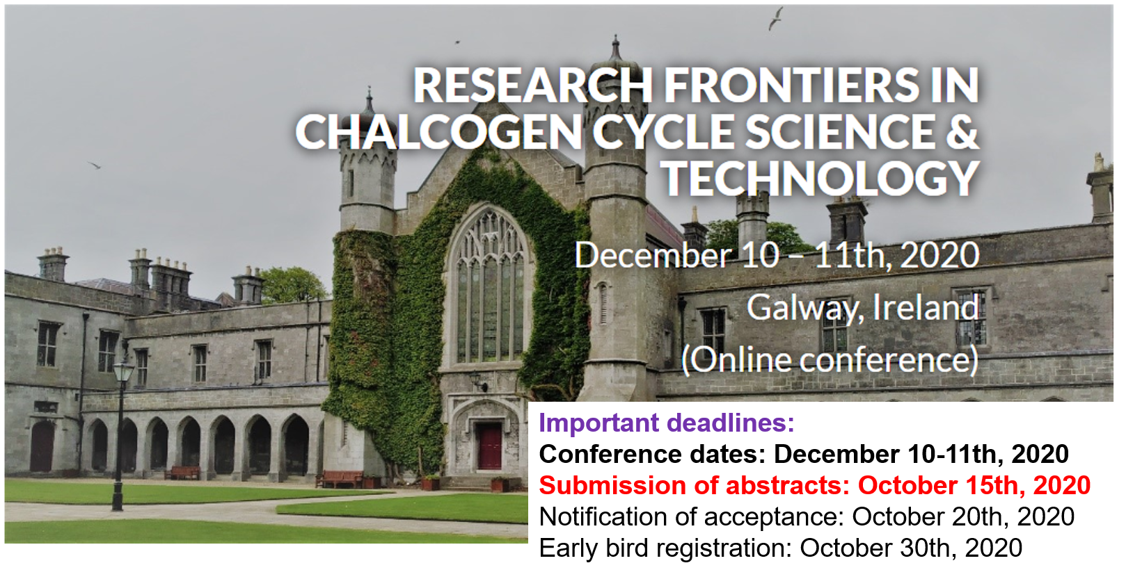 The 7th International conference on Research Frontiers in Chalcogen Cycle Science & Technology, to be held from National University Ireland Galway, Galway, Ireland), but completely online via video-link, will serve as a platform for academicians, researchers, scientists, plant managers, and industrial experts to discuss and exchange the latest scientific and technological advancements in chalcogen-based research.