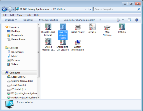 In ISS Utilities, double click Give Me Admin Rights. Please allow up to 60 seconds for this process to complete. You will receive a pop-up confirmation windows when it has completed: