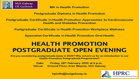 (Pictured L-R Paula Campbell, Chairperson AHPI, Professor Margaret Barry, Chair Health Promotion NUI Galway, David Bergin, Institute of Public Health, Kathryn Meade, Chair of the Accreditation Committee, Ashling Jennings, MA Health Promotion, NUIG graduate, Dr Trish Heavey Vice Chair AHPI, Biddy O’ Neill, Healthy Ireland).