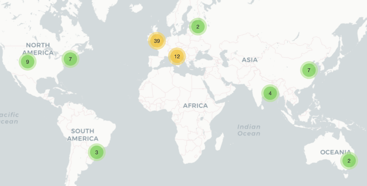 - Niall's map of all our research connections around the world is taking shape! Here's where we are at the moment